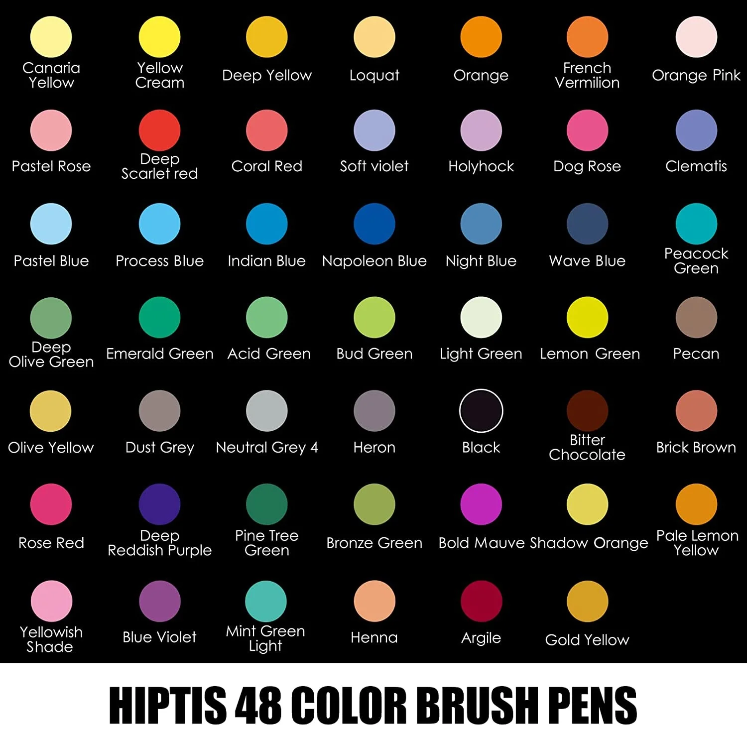 HIPTIS Watercolor Brush Pens, Painting Pens with Flexible Brush Tips Paint Markers for Coloring Drawing with Water Brush Art Supplies for Artists and Beginners (48)