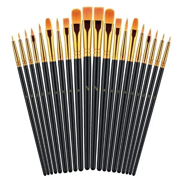 Artstorys Paint Brushes Set, 2Pack 20 Pcs Paint Brushes for Acrylic Painting, Oil Watercolor Acrylic Paint Brush, Artist Paintbrushes for Face Rock Canvas, Kids Adult Drawing Arts Crafts Supplies, Pure Black