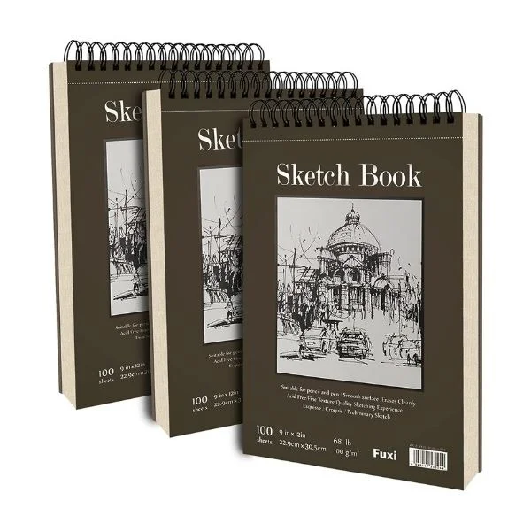 fuxi 9 x 12 inches Sketch Book, Top Spiral Bound Sketch Pad, 3 Pack 100-Sheets Each (68lb/100gsm), Acid Free Art Sketchbook Artistic Drawing Painting Writing Paper for Kids Adults Beginners Artists