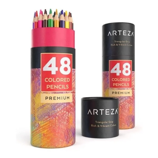 Arteza Colored Pencils, 48 Colors, Soft, Highly-Pigmented, Wax-Based Core Pencil Crayons, Art Supplies For Adults & Teens
