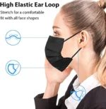 Masks: This black face masks design with Extra-soft elastic ear loops could eliminate pressure to the ears for maximum comfort. It can be used with earloop holders for additional comfort.