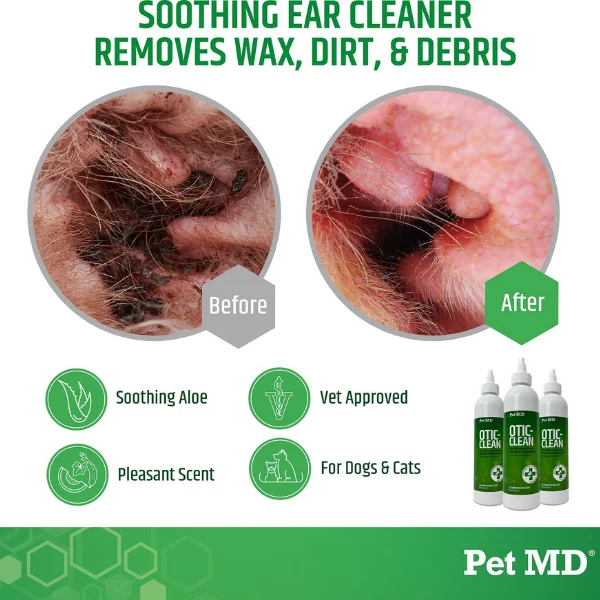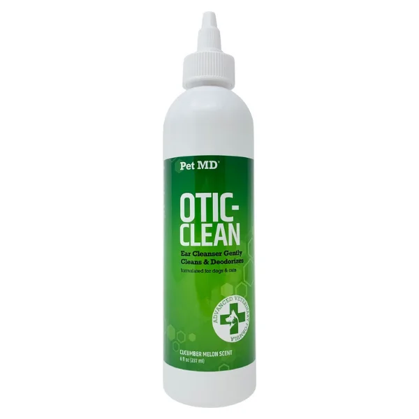Pet MD Otic Clean Cucumber Melon Scent Dog & Cat Ear Cleanser is veterinarian formulated to deodorize, clean, dry and acidify your fur-iend?s ear canal. A buildup of wax, dirt and other substances in your cat or dog?s ears can result in odors, itching and ear infections. This cleanser cleans his ears to avoid problems before they start. Featuring a fresh cucumber melon scent, the non-stinging, non-burning formula is gentle enough for daily use.